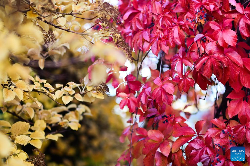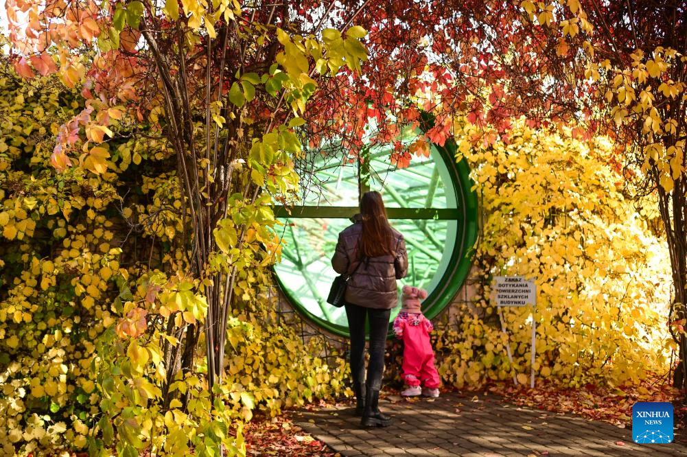 Colorful autumn leaves are seen at the rooftop garden of the University of Warsaw in Warsaw, Poland on Oct. 13, 2025. In recent days, the garden's vegetation has taken on autumn colors, attracting many visitors. (Photo by Aleksy Witwicki/Xinhua)