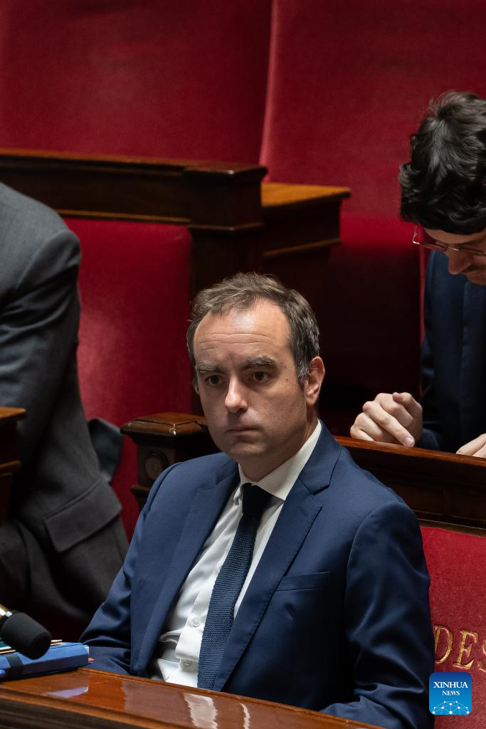 French Prime Minister Sebastien Lecornu is pictured during the debate on the no-confidence motion against his government at the National Assembly in Paris, France, Oct. 16, 2025. The French government led by Prime Minister Sebastien Lecornu survives two no-confidence motions in the National Assembly on Thursday, thus avoiding collapse in a particularly tense political climate. (Photo by Aurelien Morissard/Xinhua)