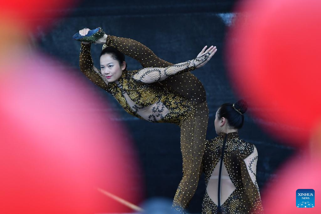 Actresses perform acrobatics during the "Meet China" cultural festival at Waisenhaus Square in Bern, the capital of Switzerland, Oct. 25, 2025.