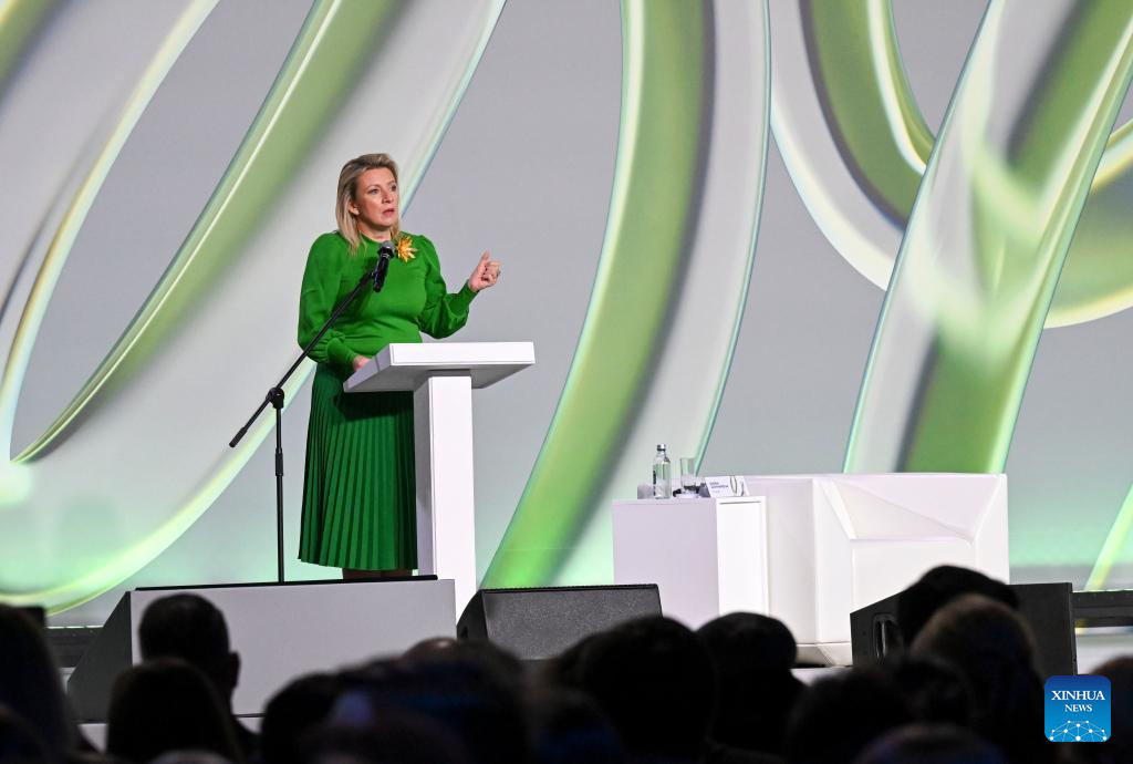 Russian Foreign Ministry spokesperson Maria Zakharova speaks at the "Dialogue about Fakes 3.0" International Forum in Moscow, Russia, Oct. 29, 2025. The Western world remains the primary producer of disinformation, and fake news has become a "pandemic" in the contemporary era, Zakharova said at the "Dialogue about Fakes 3.0" International Forum on Wednesday. (Xinhua/Hao Jianwei)