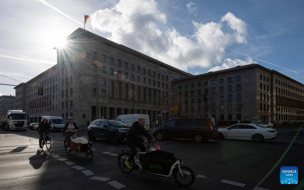 The Federal Ministry of Finance building is pictured in Berlin, Germany, Oct. 29, 2025. Germany's gross domestic product (GDP) was flat in Q3 compared to the previous three months, provisional data from the Federal Statistical Office (Destatis) showed. (Xinhua/Zhang Haofu)