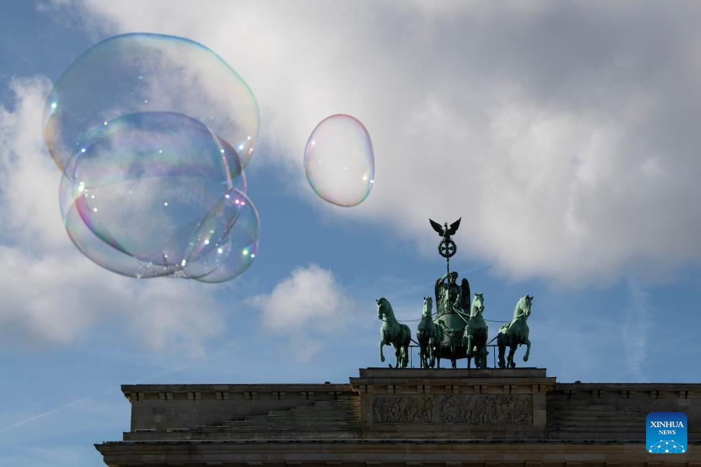 The Brandenburg Gate is pictured in Berlin, Germany, Oct. 29, 2025. Germany's gross domestic product (GDP) was flat in Q3 compared to the previous three months, provisional data from the Federal Statistical Office (Destatis) showed. (Xinhua/Zhang Haofu)