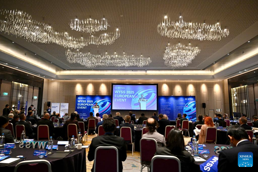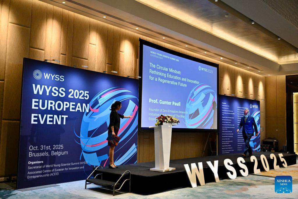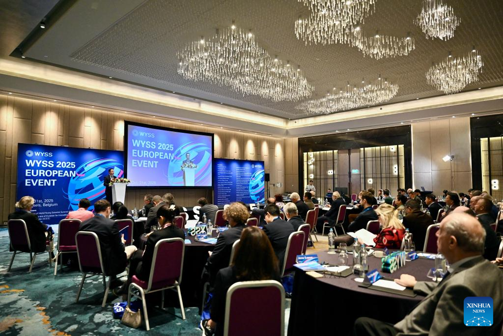 Guests attend the European event of the 2025 World Young Scientist Summit (WYSS) in Brussels, Belgium, on Oct. 31, 2025. The European event of the WYSS 2025 was held here on Friday. Over 180 young scientists, university representatives, and leaders of innovation institutions from China, Belgium, the Netherlands, Germany, France, and other countries met here to discuss scientific research cooperation, commercialization of scientific and technological achievements, and talent cultivation. (Xinhua/Lyu You)