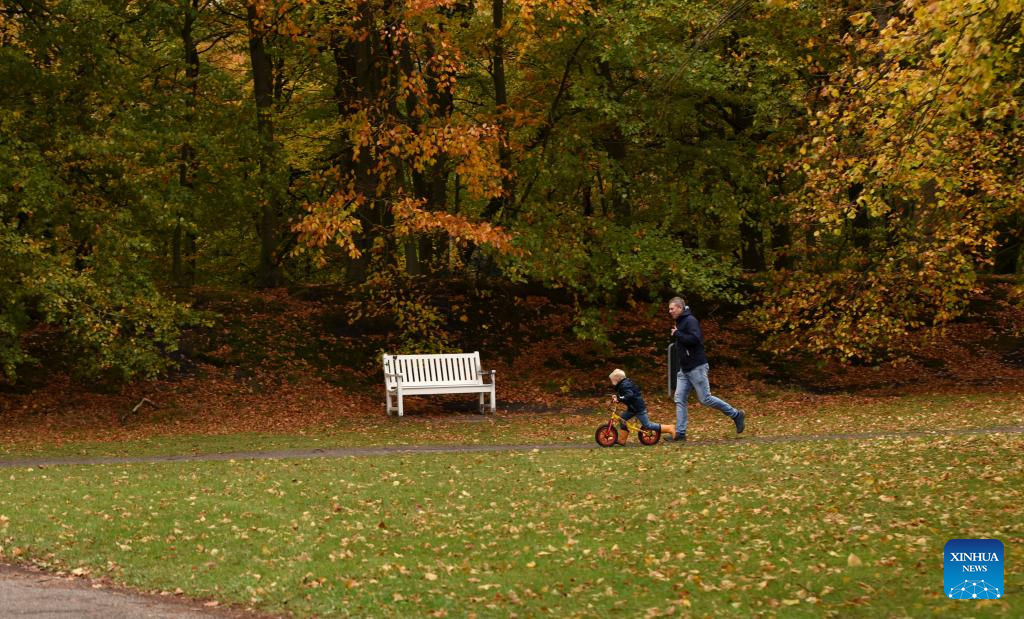 People walk at a park in The Hague, the Netherlands, Nov. 2, 2025. (Xinhua/Shao Haijun)