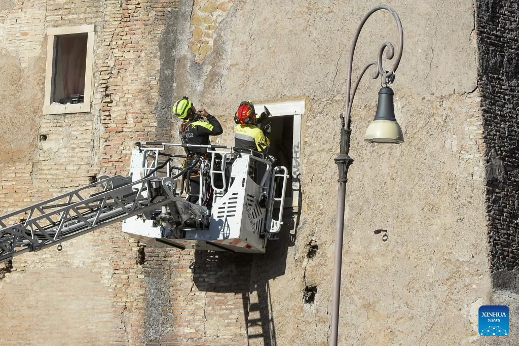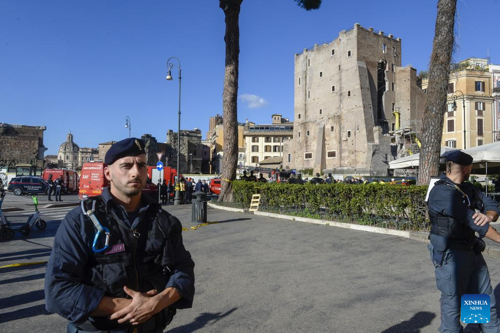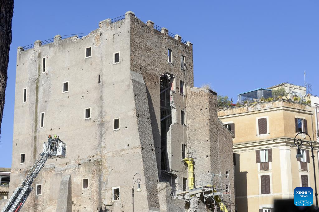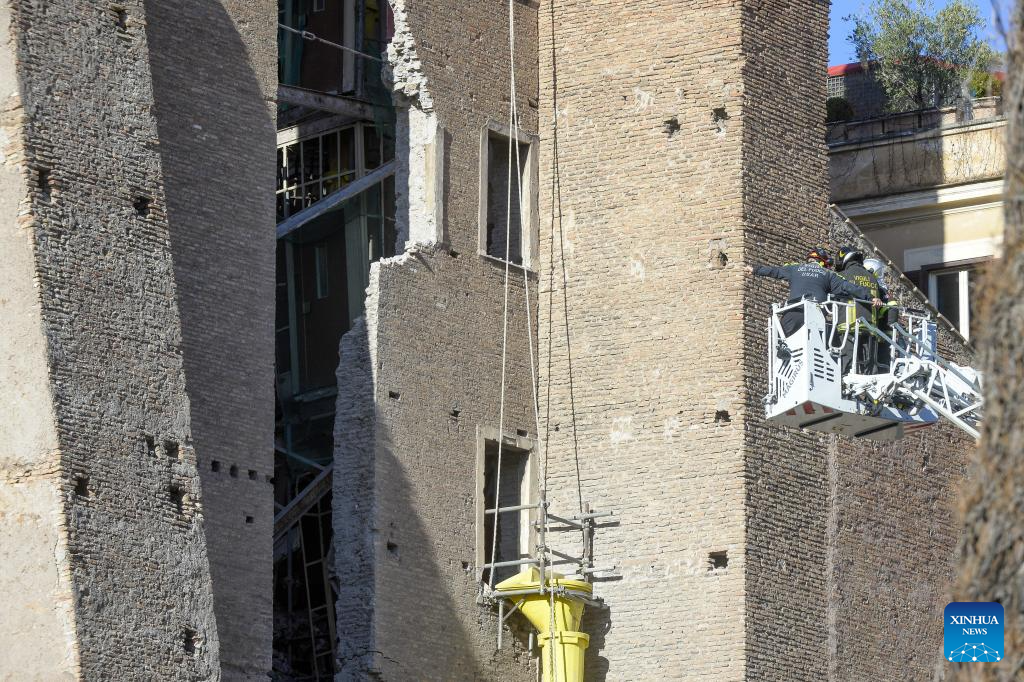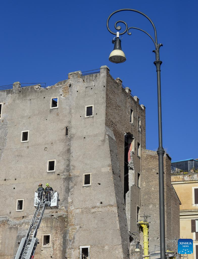 ROME, Nov. 3 (Xinhua) -- A section of the Torre dei Conti, a medieval tower undergoing restoration in central Rome, collapsed on Monday, injuring four construction workers and prompting an emergency rescue operation, local media reported.