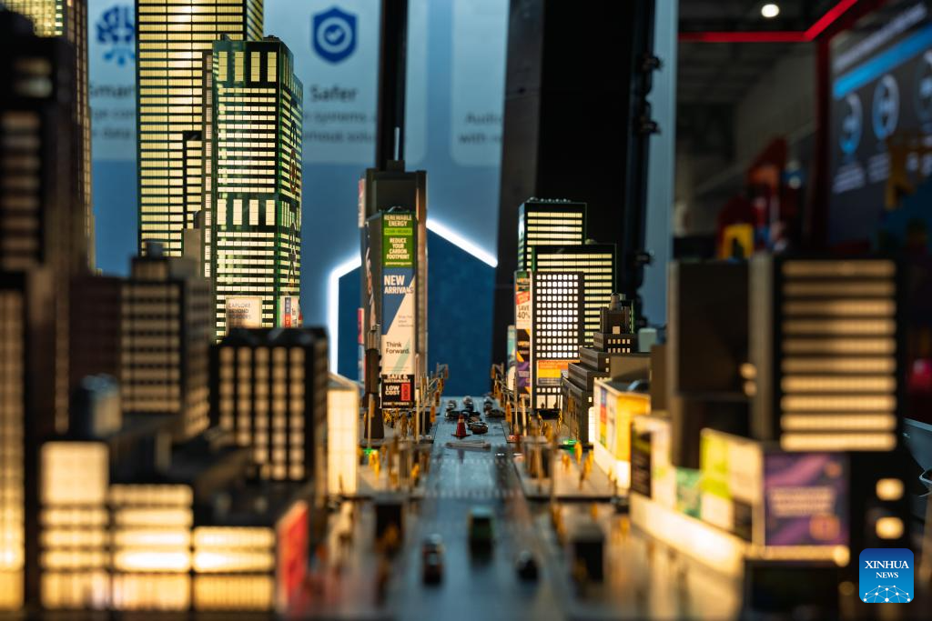 A model of smart city is seen at the 2025 Smart City Expo World Congress in Barcelona, Spain, Nov. 4, 2025. The event will last till Nov. 6. (Photo by Joan Gosa/Xinhua)