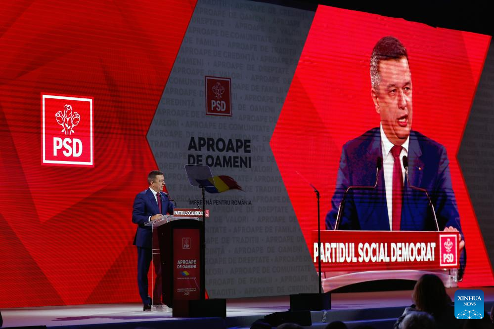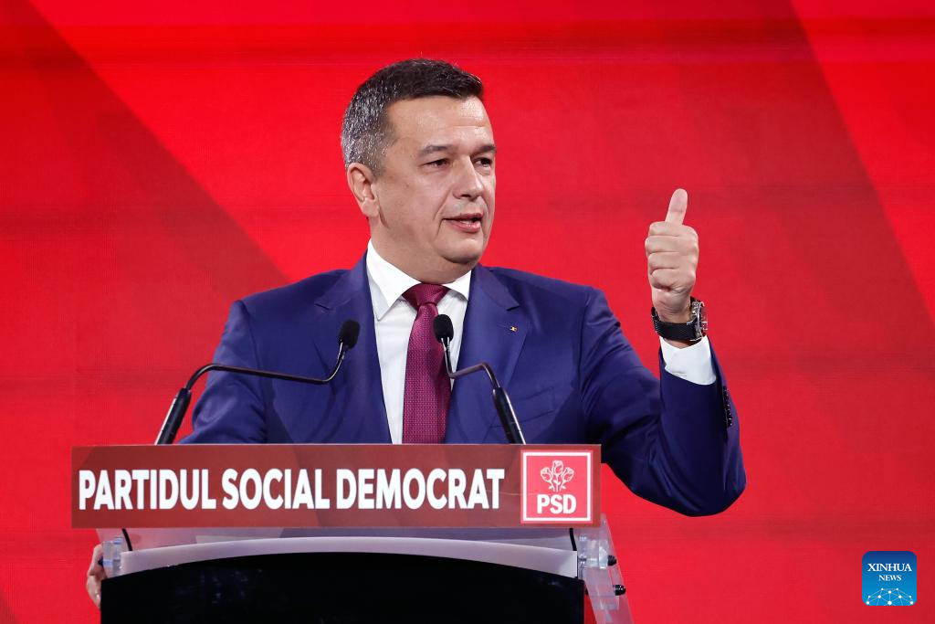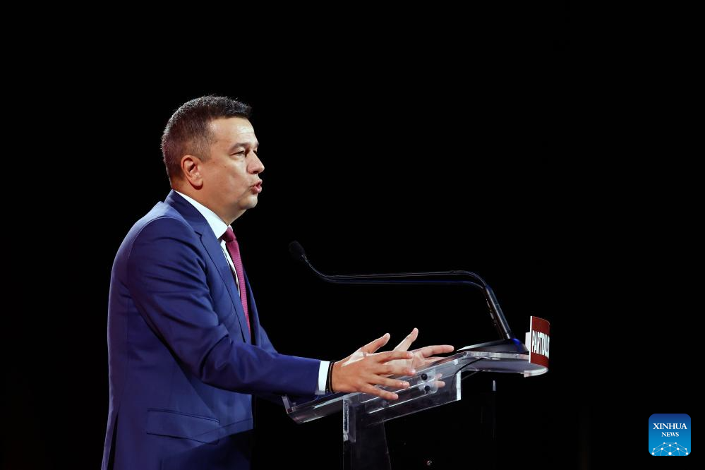 Grindeanu, the sole candidate, received 2,787 votes in favor, with eight abstentions, formalizing his position after serving as interim leader following Marcel Ciolacu's resignation in May. (Photo by Cristian Cristel/Xinhua)