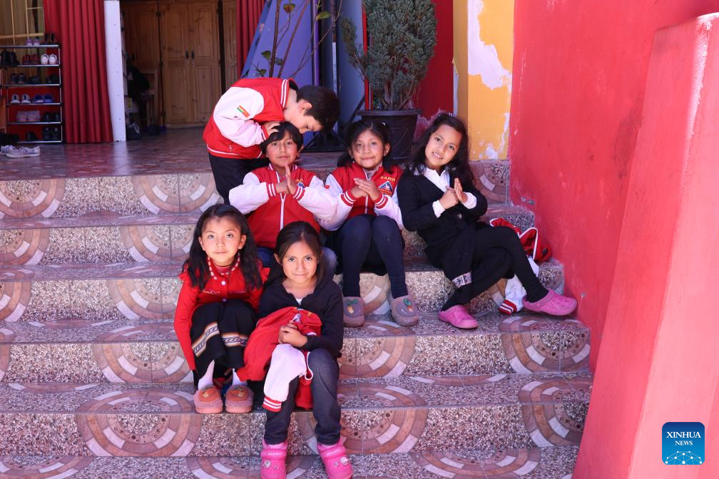 Bolivian children perform the "fist and palm" salute in La Paz, Bolivia, Oct. 20, 2025. (Xinhua/Li Xin)