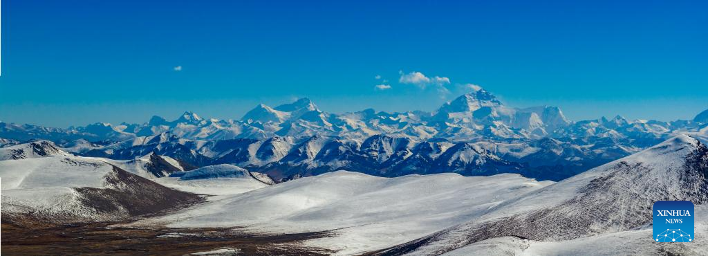 A drone photo taken on Nov. 12, 2025 shows a view of Mount Qomolangma in Tingri County of Xigaze, southwest China's Xizang Autonomous Region. (Xinhua/Li Jian)