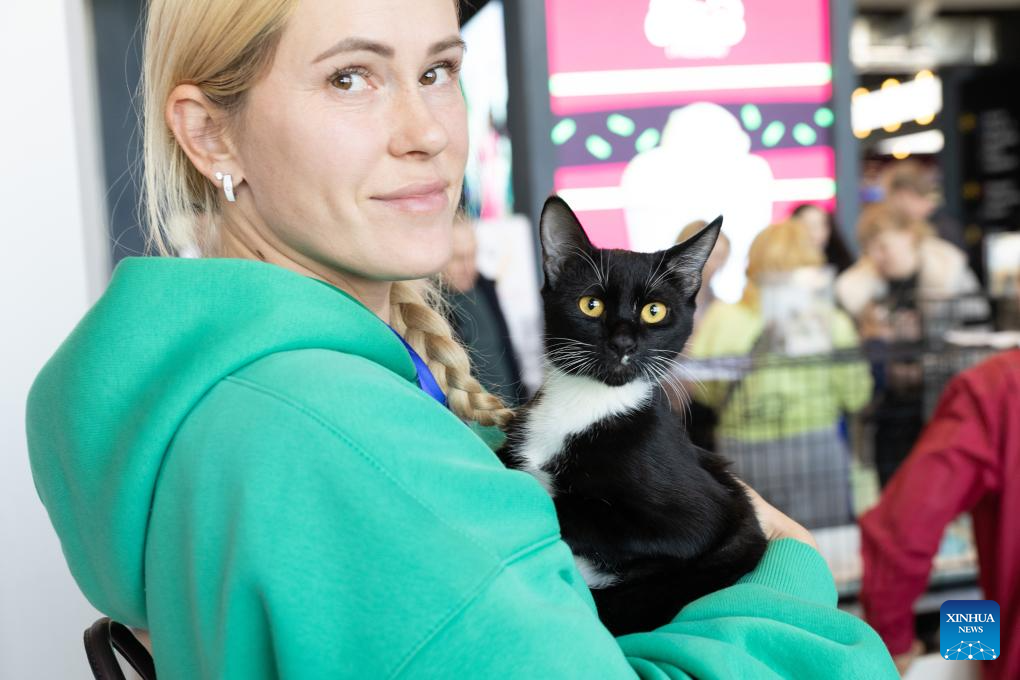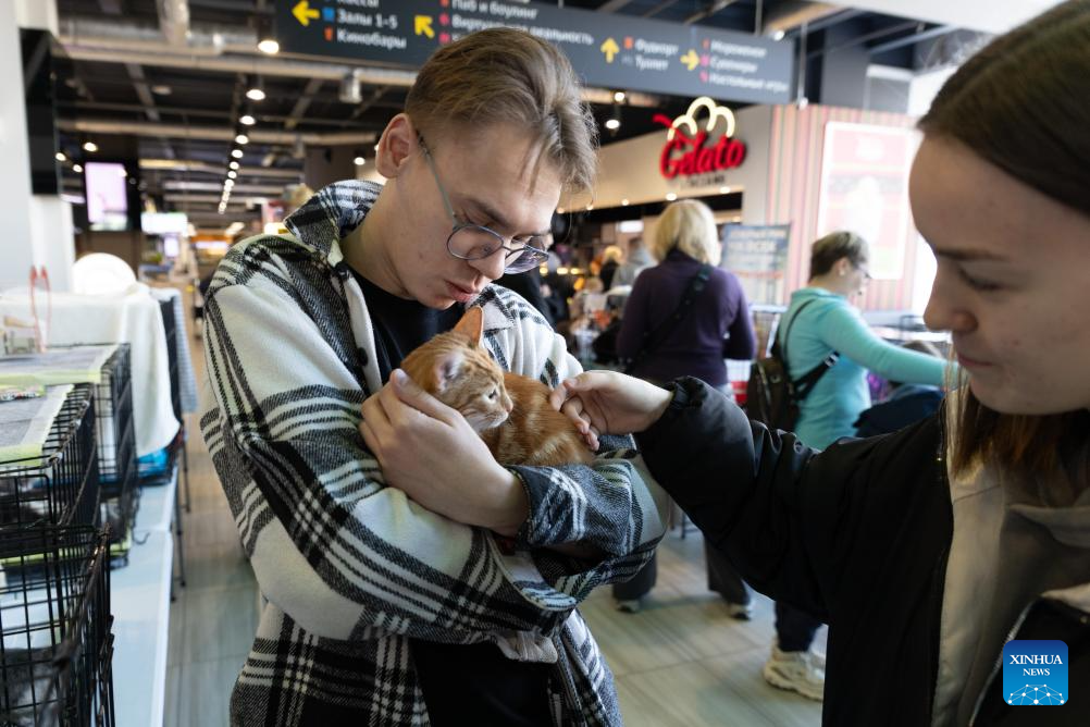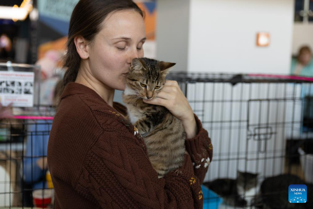 People attend a charity event for adopting stray cats and dogs in Vladivostok, Russia, Nov. 15, 2025. (Photo by Andrey Matveenko/Xinhua)