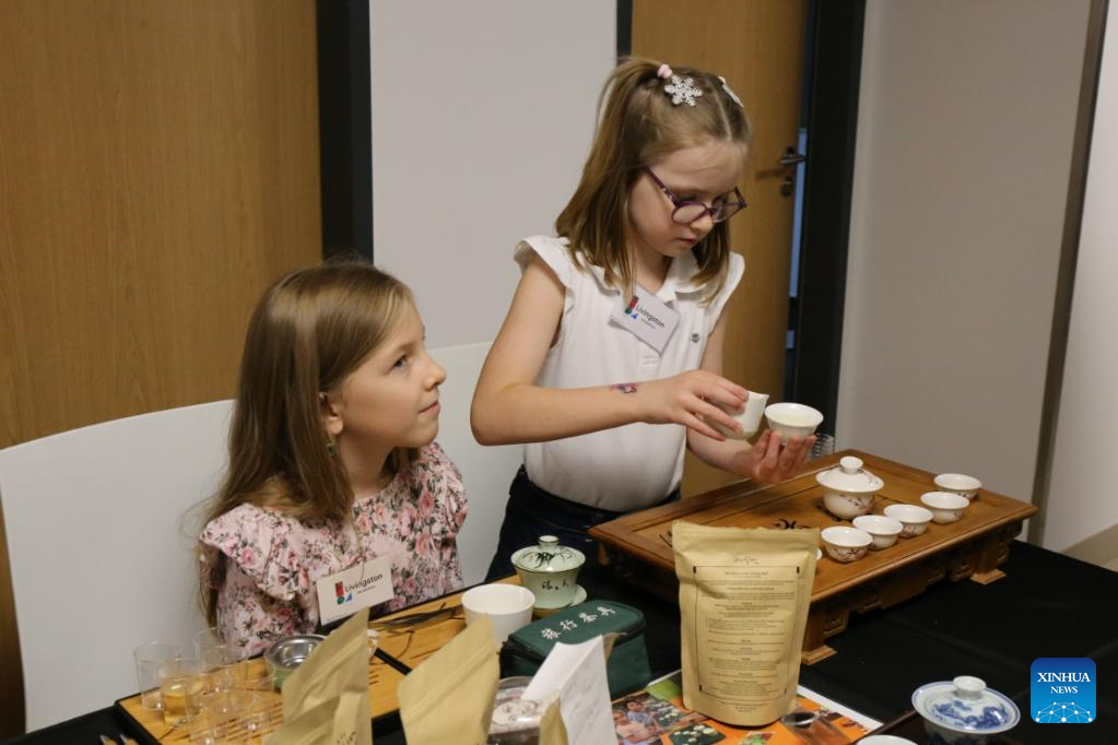 Children try Chinese tea ceremony during the 2025 Euro Tea Expo held in Prague, the Czech Republic, Nov. 15, 2025. The 2025 Euro Tea Expo concluded on Sunday in Prague, bringing together tea experts, exhibitors and enthusiasts from around the world, with this year's focus on Chinese Pu'er tea and southwest China's Yunnan Province.