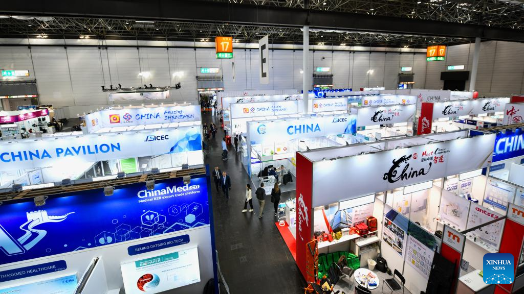 People visit the China Pavilion at the Medica 2025 in Dusseldorf, Germany, Nov. 17, 2025. A prominent medical device exhibition kicked off on Monday in Dusseldorf, Germany, with more than 1300 Chinese companies attending the event.