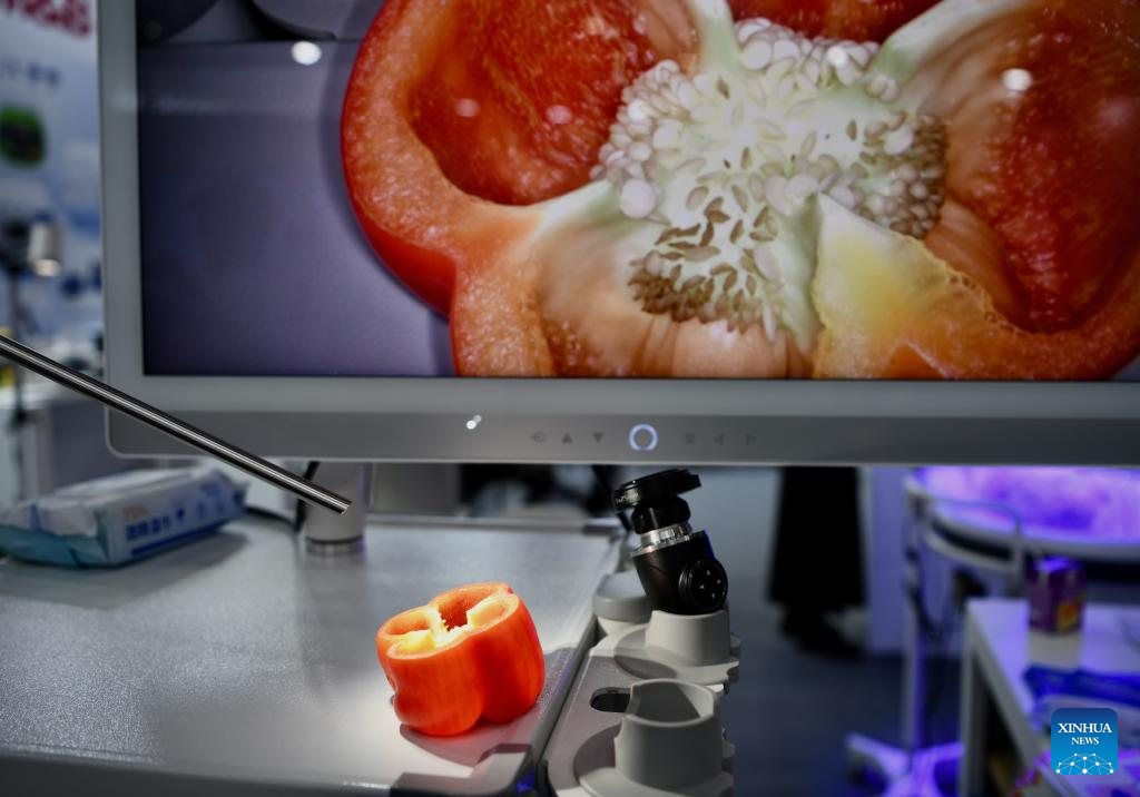 A medical optical equipment is displayed at the Medica 2025 in Dusseldorf, Germany, Nov. 17, 2025. A prominent medical device exhibition kicked off on Monday in Dusseldorf, Germany, with more than 1300 Chinese companies attending the event.