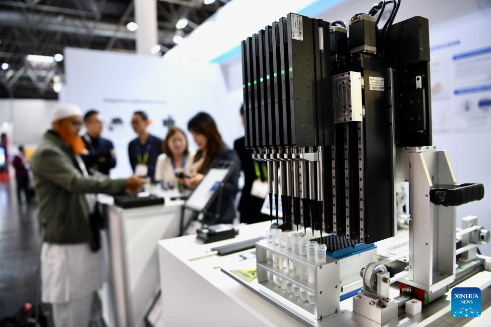 An automated pipetting machine is displayed at the exhibition area of Keyto at the Medica 2025 in Dusseldorf, Germany, Nov. 17, 2025. A prominent medical device exhibition kicked off on Monday in Dusseldorf, Germany, with more than 1300 Chinese companies attending the event.
