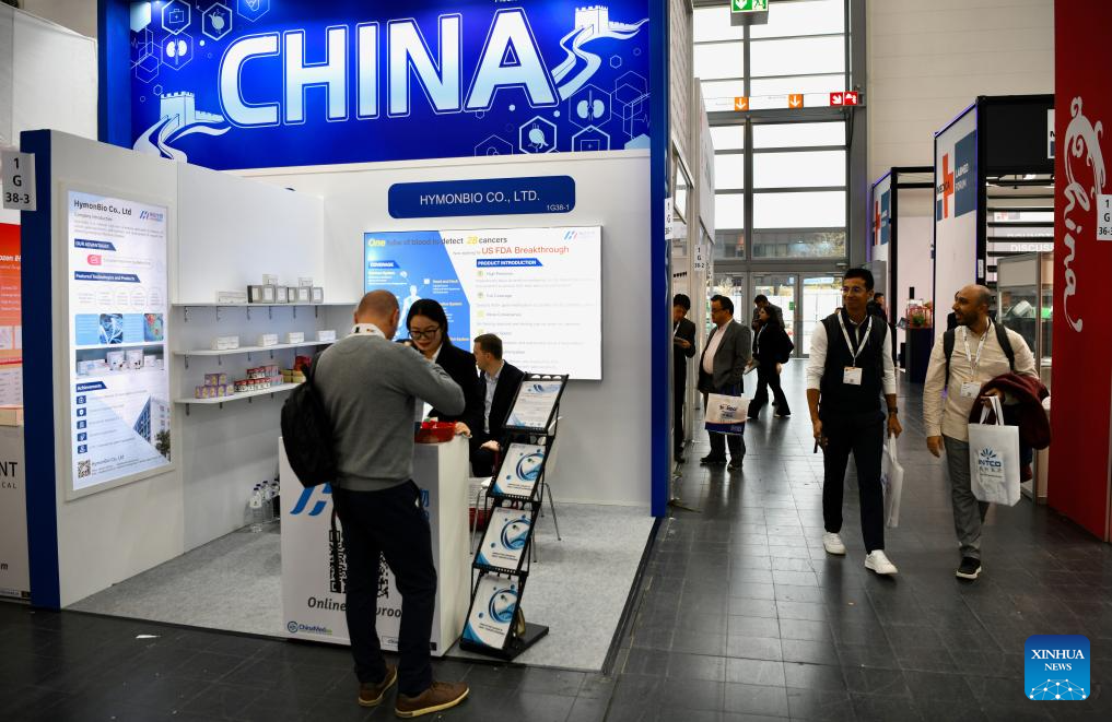 People visit an exhibition area of Chinese firms at the Medica 2025 in Dusseldorf, Germany, Nov. 17, 2025. A prominent medical device exhibition kicked off on Monday in Dusseldorf, Germany, with more than 1300 Chinese companies attending the event.