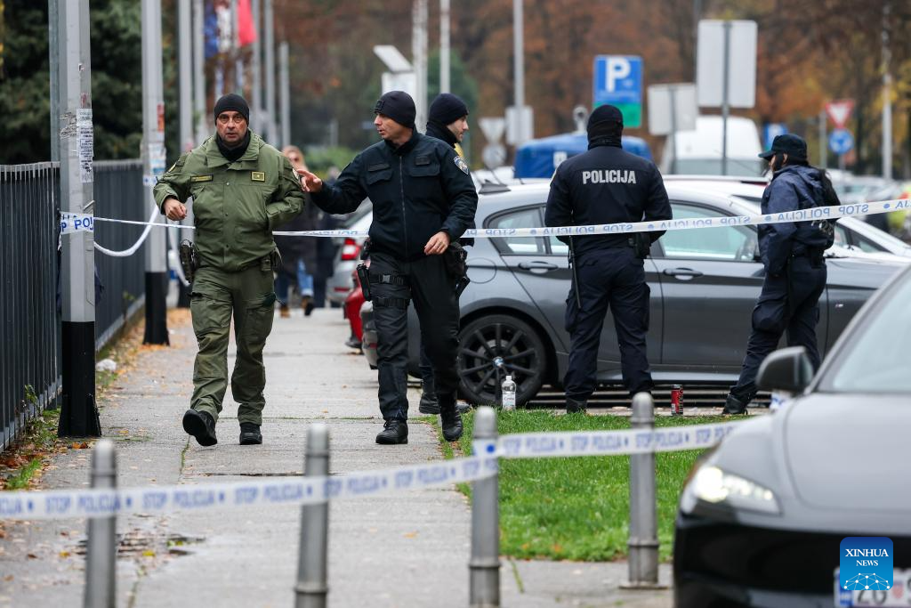 Police officers carry out an on-site investigation near the Vjesnik building in Zagreb, Croatia, Nov. 26, 2025. The Vjesnik building, which was completely destroyed in the devastating fire last week, will have to be demolished, Croatian Deputy Prime Minister and Minister of Physical Planning, Construction and State Assets Branko Bacic said in a statement on Monday. (Igor Kralj/PIXSELL via Xinhua)