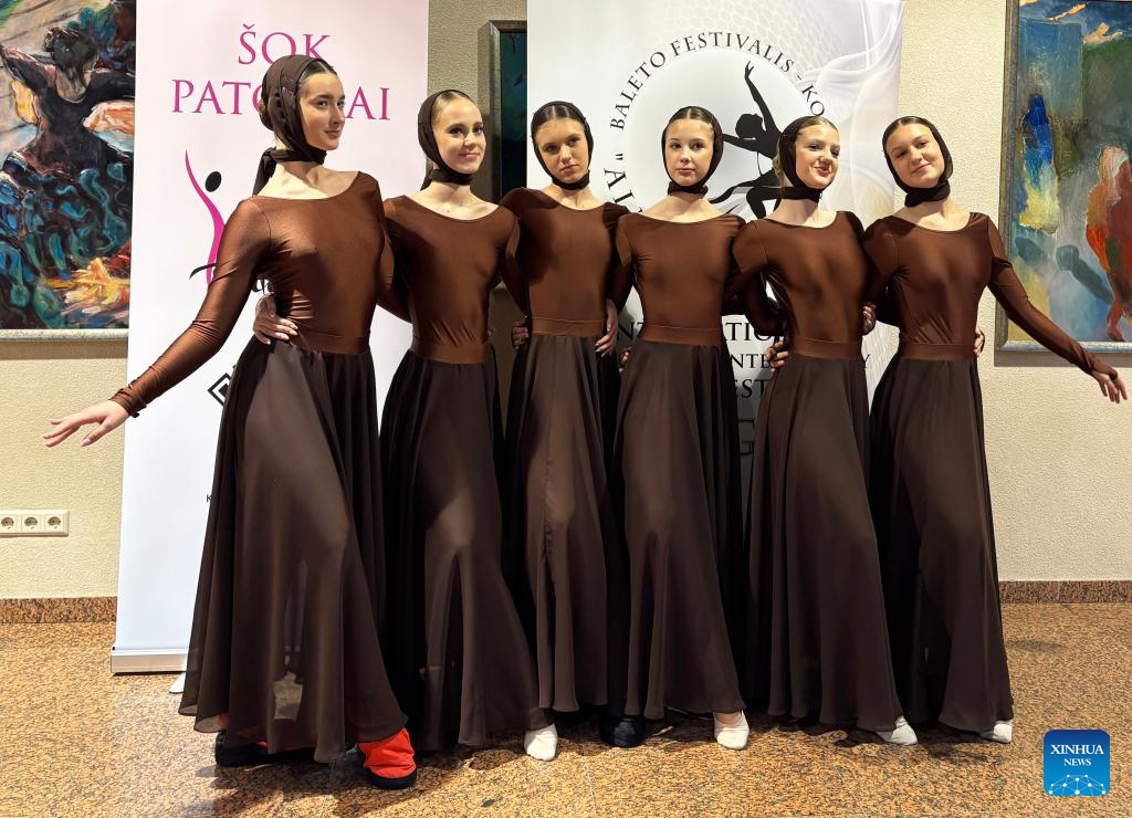 Performers pose for a photo during the International Ballet and Contemporary Dance Festival-Competition "ALLEGRO 2025" in Vilnius, Lithuania, on Nov. 23, 2025. Hundreds of dancers competed in the event held here from Nov. 22 to 23. (Xinhua/Xue Dongmei)