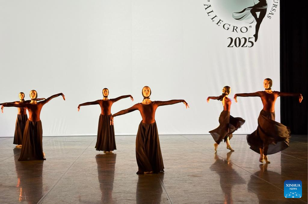 Dancers perform during the International Ballet and Contemporary Dance Festival-Competition "ALLEGRO 2025" in Vilnius, Lithuania, on Nov. 23, 2025. Hundreds of dancers competed in the event held here from Nov. 22 to 23. (Xinhua/Xue Dongmei)