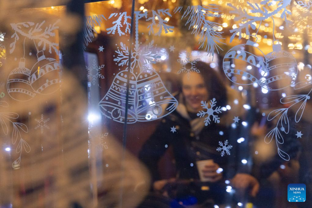 Decorations are seen on a Christmas tram in Budapest, Hungary on Nov. 28, 2025. (Photo by Attila Volgyi/Xinhua)