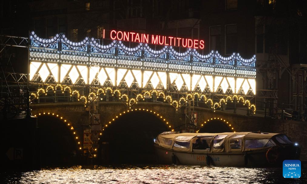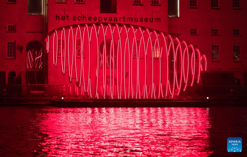 A light installation is seen at the Amsterdam Light Festival in Amsterdam, the Netherlands, Nov. 27, 2025. The light festival started on Nov. 27 and will last until Jan. 18, 2026. (Photo by Sylvia Lederer/Xinhua)