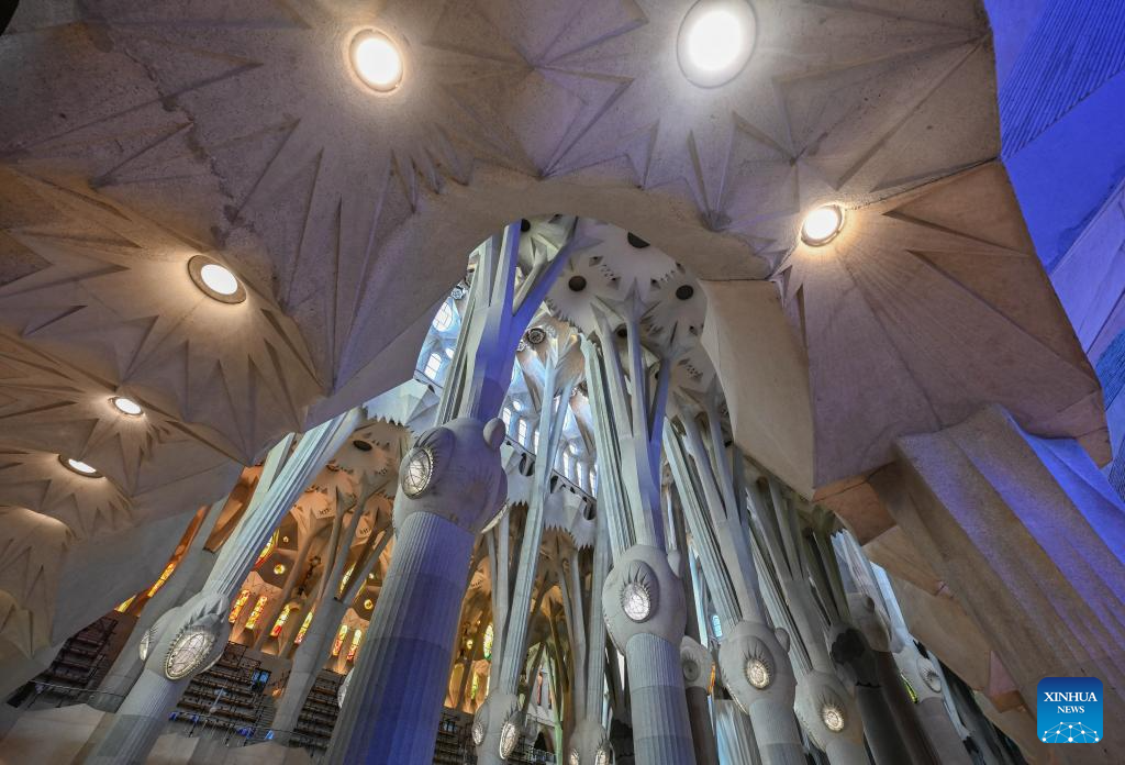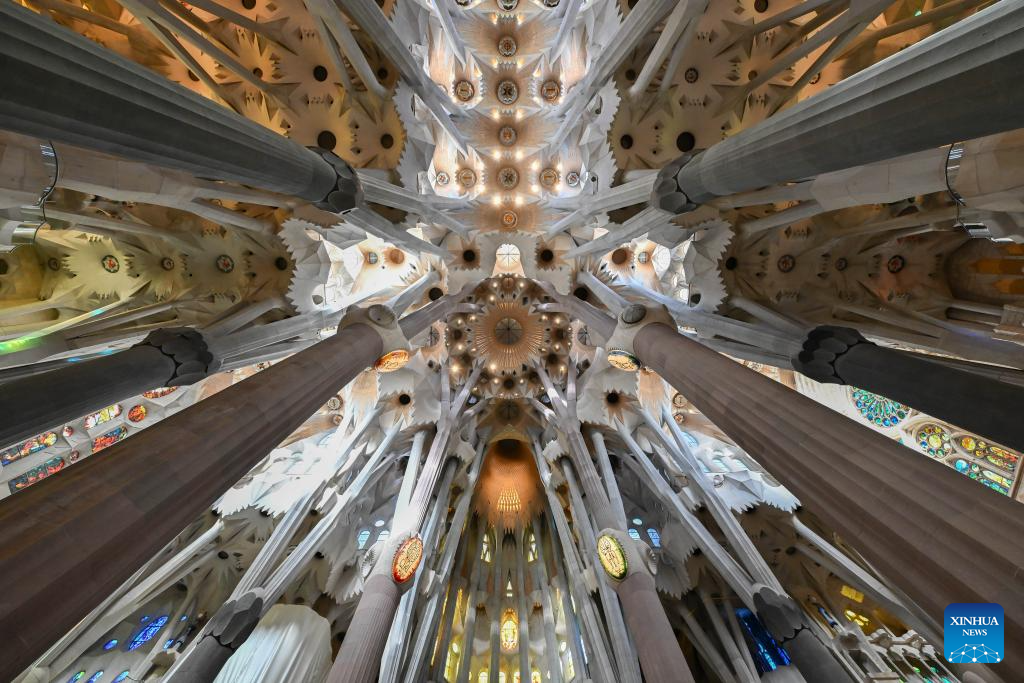 This photo taken on Dec. 1, 2025 shows an interior view of the Sagrada Familia basilica in Barcelona, Spain. Sagrada Familia basilica, a masterpiece of world-renowned designer Antoni Gaudi, is still under construction after the first stone was laid in 1882. (Xinhua/Cheng Min)