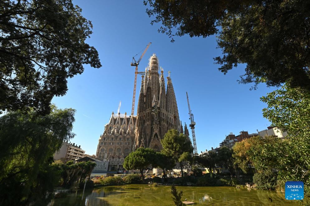 This photo taken on Dec. 1, 2025 shows an exterior view of the Sagrada Familia basilica in Barcelona, Spain. Sagrada Familia basilica, a masterpiece of world-renowned designer Antoni Gaudi, is still under construction after the first stone was laid in 1882. (Xinhua/Cheng Min)