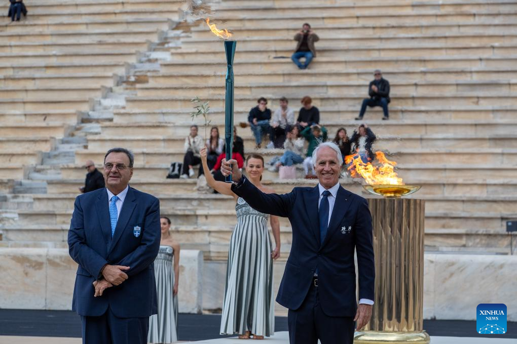 ATHENS, Dec. 4 (Xinhua) -- Greece on Thursday held the Olympic flame handover ceremony for the 2026 Milan-Cortina Olympic Winter Games at the historic Panathenaic Stadium in Athens.