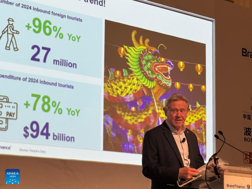 Brand Finance chairman David Haigh speaks at a forum on the international influence of Chinese companies in London, Britain, on Oct. 15, 2025. (Xinhua/Gao Wencheng)