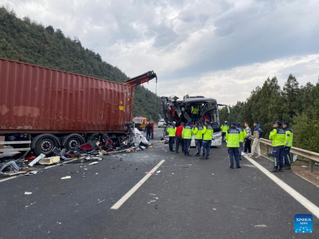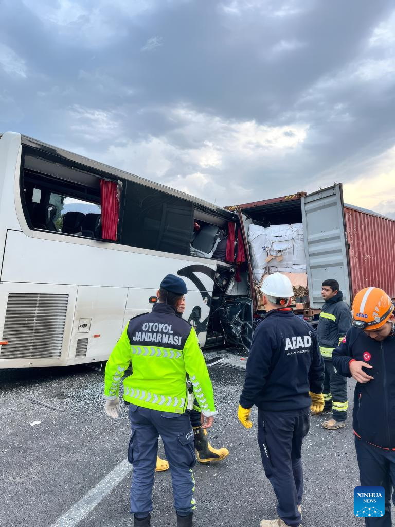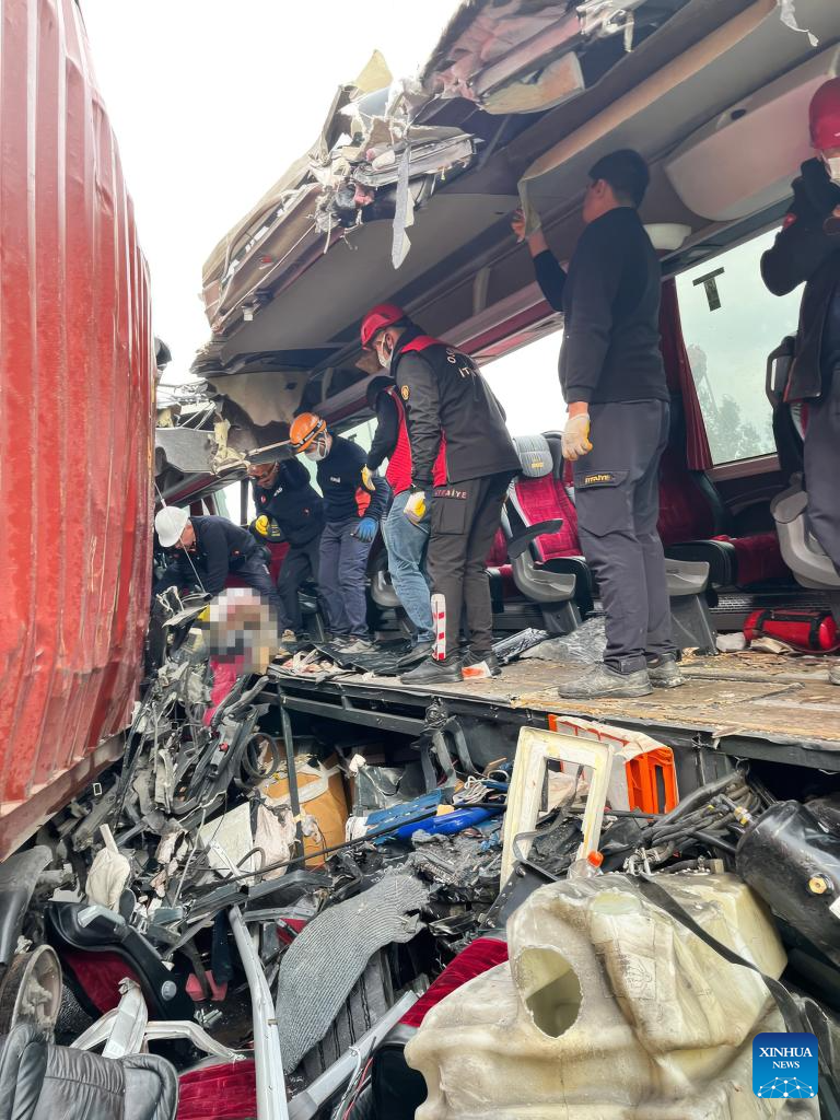 ANKARA, Dec. 6 (Xinhua) -- At least seven people were killed and 11 others injured on Saturday when a passenger bus rear-ended a stationary truck on a main highway in Türkiye's southeastern Osmaniye province, semi-official Anadolu Agency reported.