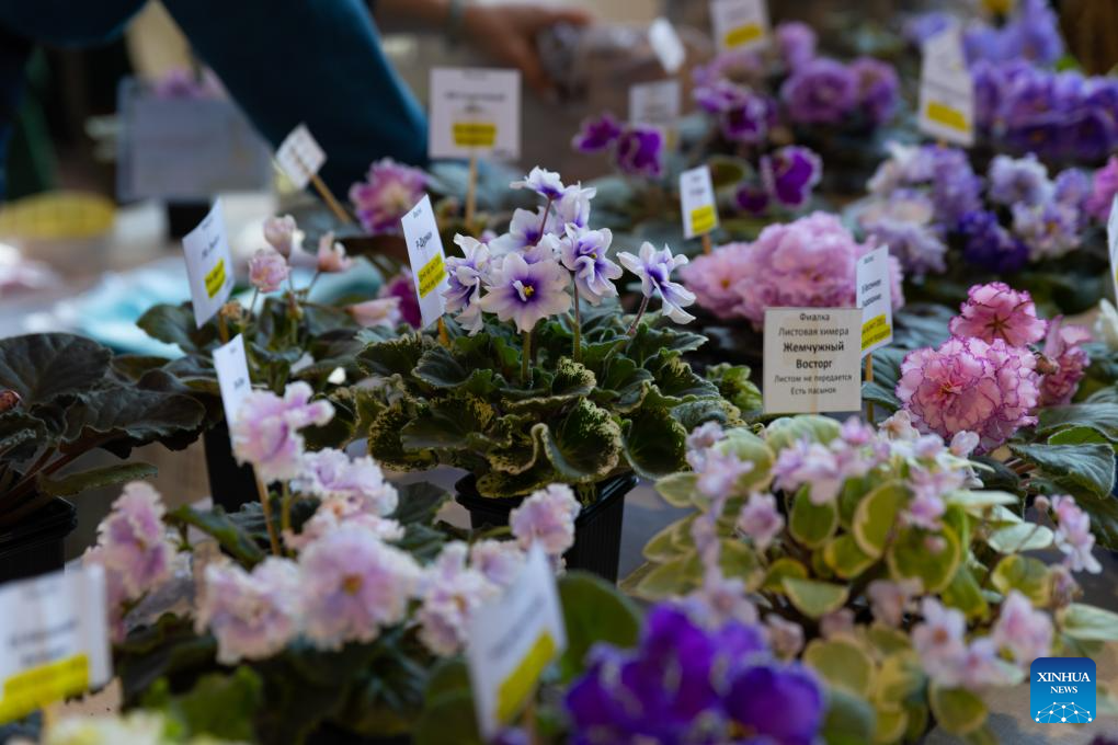 This photo taken on Dec. 7, 2025 shows flowers at a plant and flower market held in Vladivostok, Russia. (Photo by Andrey Matveenko/Xinhua)