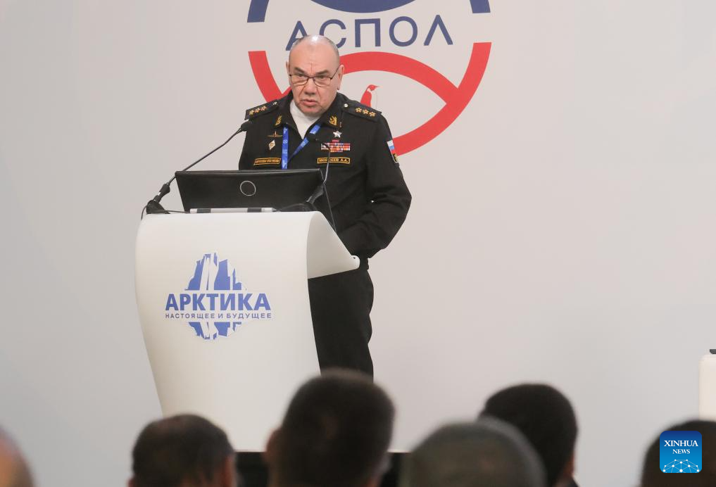 Russia's Navy Commander-in-Chief Admiral Alexander Moiseyev speaks at the 15th International Forum Arctic: Today and the Future in St. Petersburg, Russia, Dec. 9, 2025. (Photo by Guo Feizhou/Xinhua)