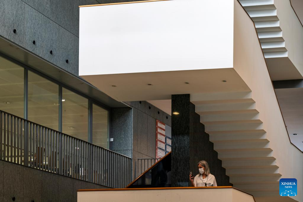 A woman wearing a face mask is pictured in Hospital de Sant Pau, Barcelona, Spain, on Dec. 11, 2025. (Photo by Joan Gosa/Xinhua)