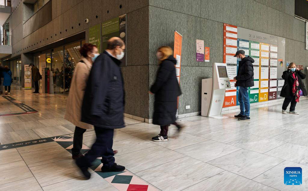 People wearing face masks are seen in Hospital de Sant Pau, Barcelona, Spain, on Dec. 11, 2025. (Photo by Joan Gosa/Xinhua)