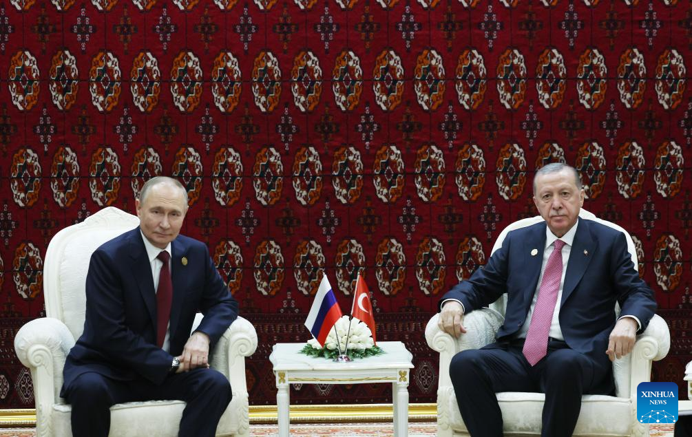 According to the Turkish presidency, Erdogan made the remarks during a meeting with his Russian counterpart, Vladimir Putin, on the sidelines of an international peace forum in Ashgabat, Turkmenistan.