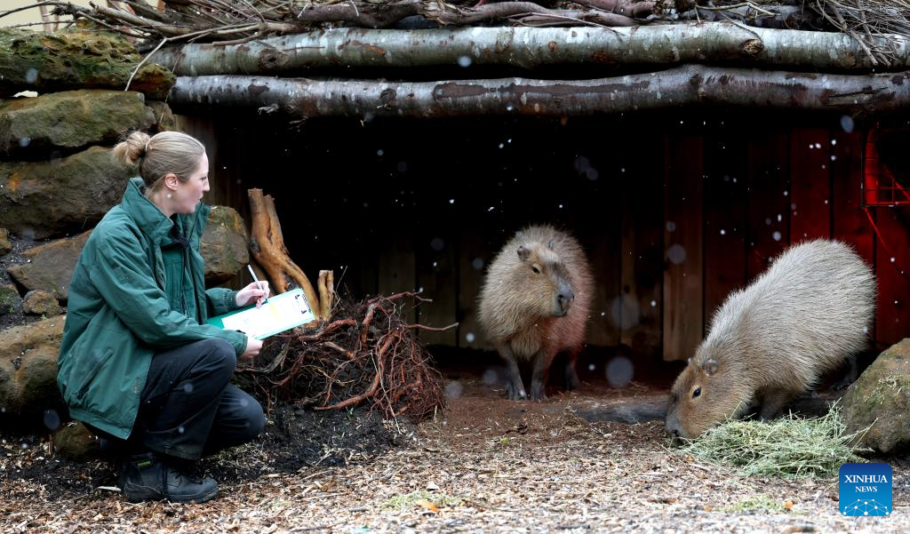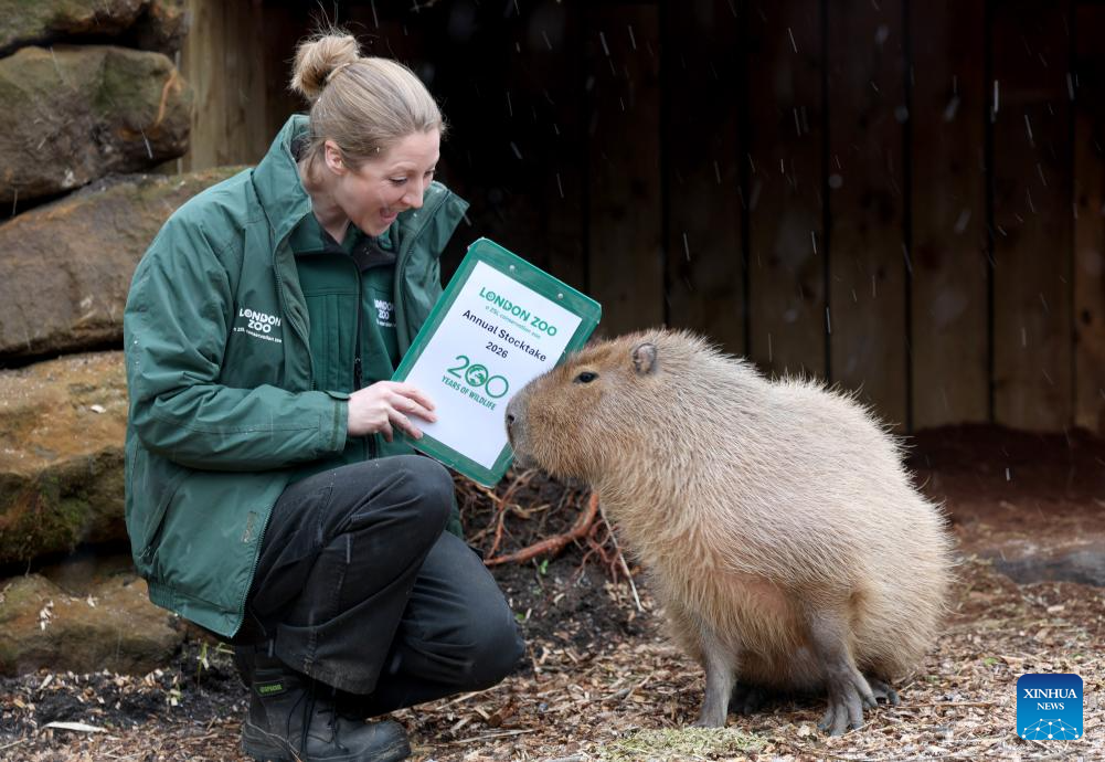 A zookeeper counts capybaras during the annual stocktake at London Zoo in London, Britain, Jan. 6, 2026. (Xinhua/Li Ying)