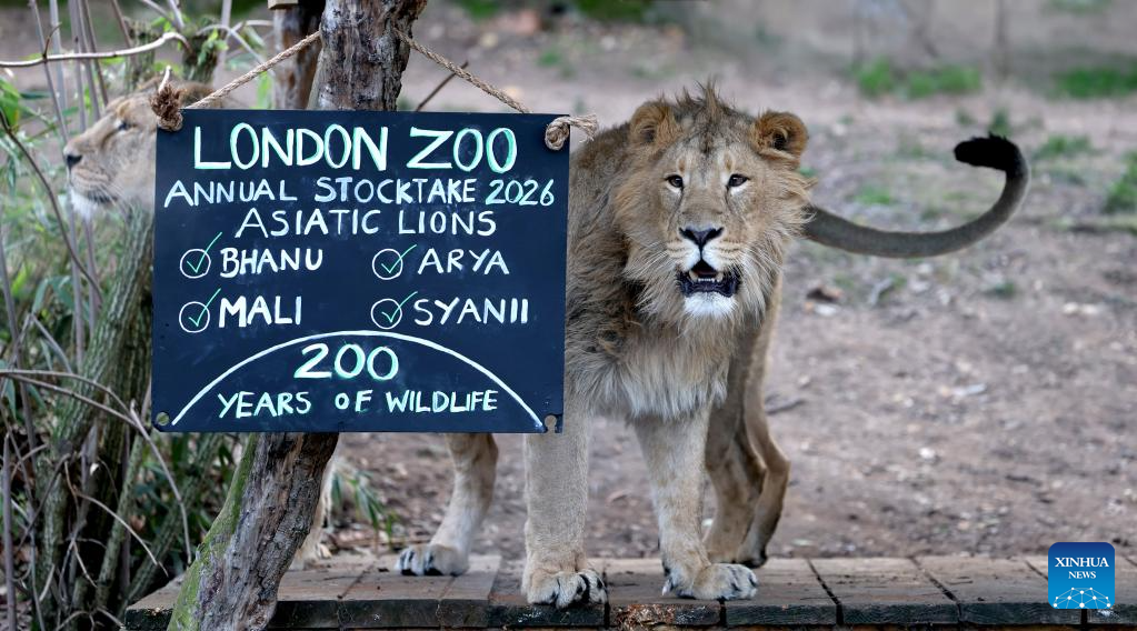 A lion is seen during the annual stocktake at London Zoo in London, Britain, Jan. 6, 2026. (Xinhua/Li Ying)