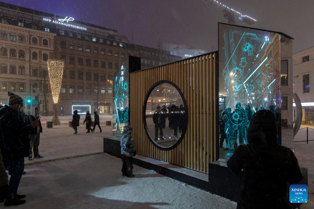 People view a light installation at the light festival in Helsinki, Finland, on Jan. 6, 2026. (Photo by Matti Matikainen/Xinhua)