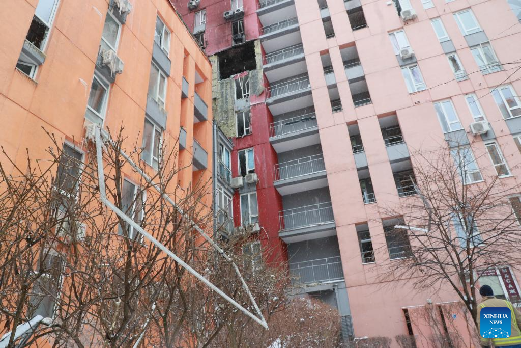 KIEV, Jan. 9 (Xinhua) -- Russia launched a massive drone and missile attack on Ukraine overnight Friday, killing at least four people and injuring 25 others in Kiev, authorities said.