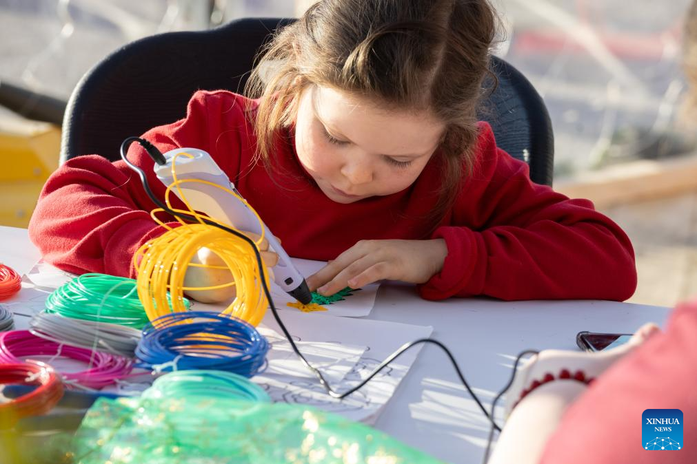 A young girl uses a 3D printing pen to make handicrafts in Vladivostok, Russia, Jan. 8, 2026. Russia's New Year holiday in 2026 will last till Jan. 11. (Photo by Andrey Matveenko/Xinhua)