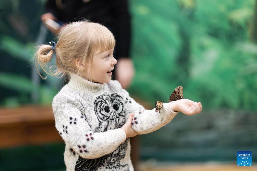 A girl interacts with butterflies at a butterfly house in Vladivostok, Russia, Jan. 8, 2026. Russia's New Year holiday in 2026 will last till Jan. 11. (Photo by Andrey Matveenko/Xinhua)