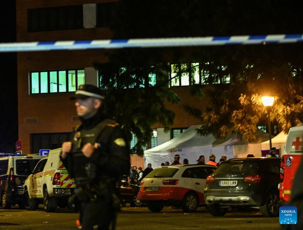 This photo taken on Jan. 19, 2026 shows a scene at a center for relatives of victims of the train derailment in Cordoba, Spain. Spanish Prime Minister Pedro Sanchez on Monday announced three days of official mourning following a train crash in southern Spain that has killed at least 40 people. The accident occurred at around 7:45 p.m. local time (1845 GMT) on Sunday, when a train carrying 317 passengers on the Malaga-Madrid route derailed for reasons still unknown near Adamuz, about 20 km north of the city of Cordoba. (Xinhua/Cheng Min)