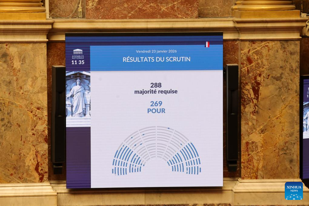 PARIS, Jan. 23 (Xinhua) -- The French government led by Prime Minister Sebastien Lecornu survived two no-confidence votes on Friday after deputies in the National Assembly rejected the motions.