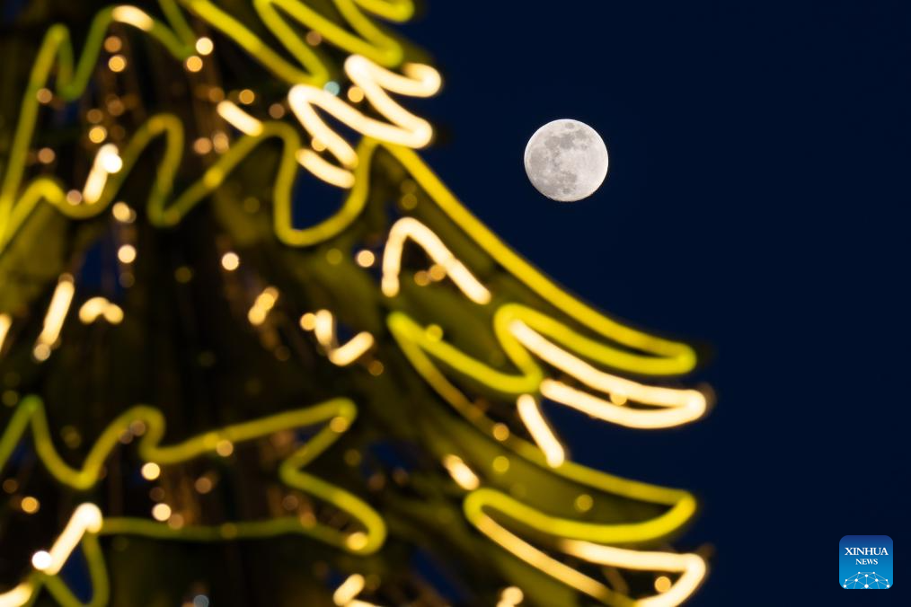 A bright moon is seen above a street in Warsaw, Poland on Jan. 31, 2026. (Photo by Jaap Arriens/Xinhua)