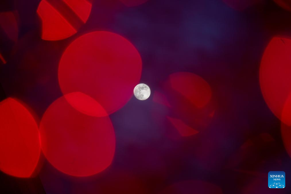 A bright moon is seen over Warsaw, Poland on Jan. 31, 2026. (Photo by Jaap Arriens/Xinhua)
