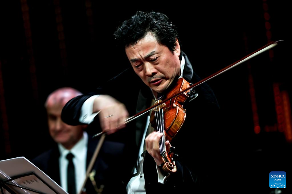 Chinese violinist Lyu Siqing performs during "The New Four Seasons of Hungary and China Concert" at the Liszt Academy of Music in Budapest, Hungary, Feb. 2, 2026. A China-Hungary musical joint premiere was held Monday evening in Budapest as the European tour of "The New Four Seasons of Hungary and China Concert" opened at the Liszt Academy of Music. (Photo by David Balogh/Xinhua)