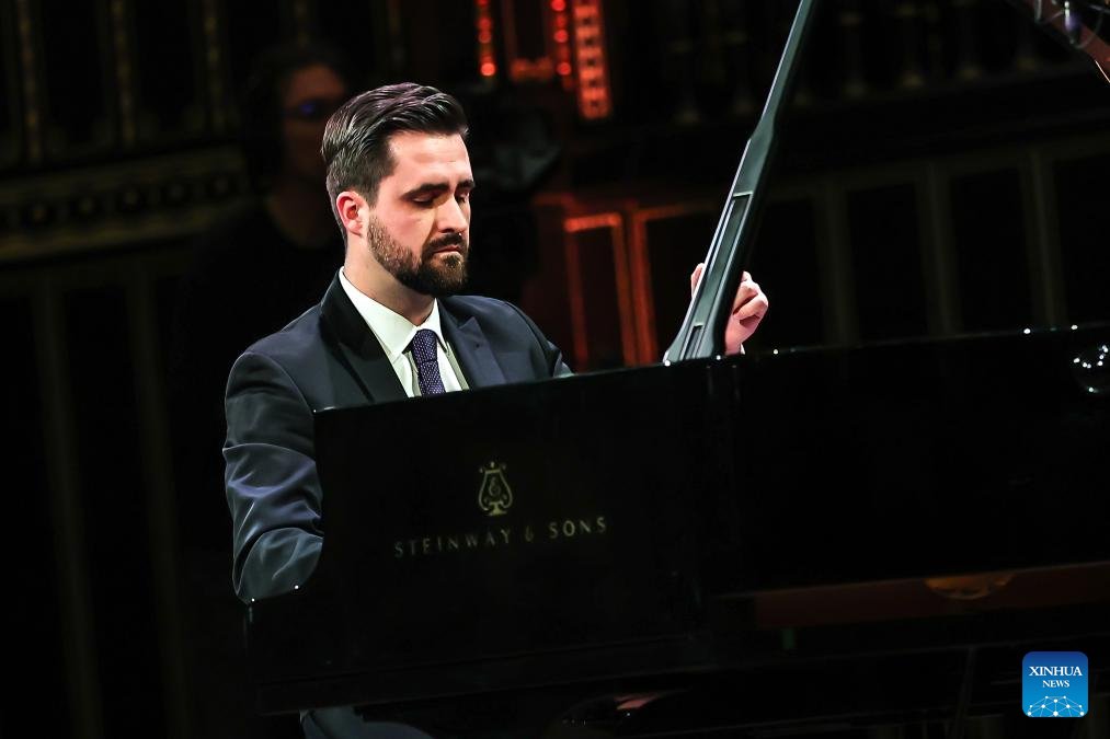 Hungarian pianist Gergely Kovacs performs during "The New Four Seasons of Hungary and China Concert" at the Liszt Academy of Music in Budapest, Hungary, Feb. 2, 2026. A China-Hungary musical joint premiere was held Monday evening in Budapest as the European tour of "The New Four Seasons of Hungary and China Concert" opened at the Liszt Academy of Music. (Photo by David Balogh/Xinhua)