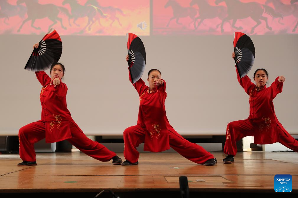A Kung Fu show is staged at the 2026 Berlin-Brandenburg Spring Festival Gala in the Technical University of Berlin, in Berlin, Germany, Feb. 1, 2026. Organized by and for Chinese students, the event welcomed the Chinese New Year, which begins on Feb. 17 and ushers in the Year of the Horse.(Xinhua/Du Zheyu)