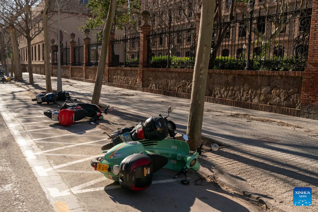 MADRID, Feb. 12 (Xinhua) -- Winds gusting at over 100 kilometers per hour have caused injuries, structural damage and transport disruptions in the northeastern Spanish region of Catalonia.