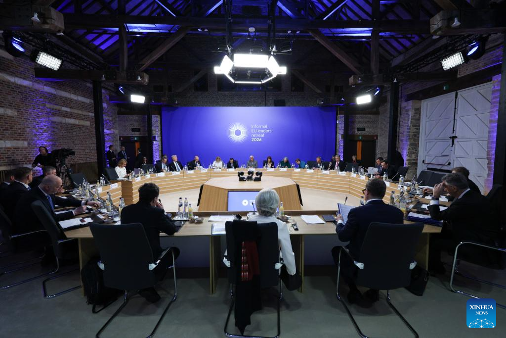 This photo taken on Feb. 12, 2026 shows an informal retreat of European Union leaders at Alden Biesen castle in Belgium. (EU/Handout via Xinhua)