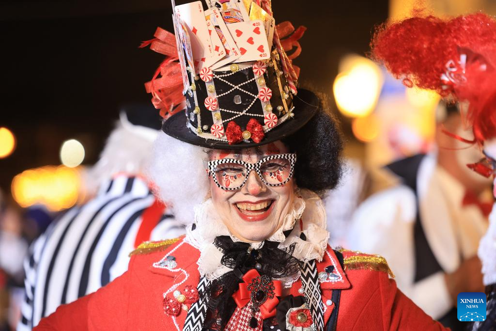 People participate in a carnival parade in Samobor, Croatia, Feb. 14, 2026. (Marko Prpic/PIXSELL via Xinhua)